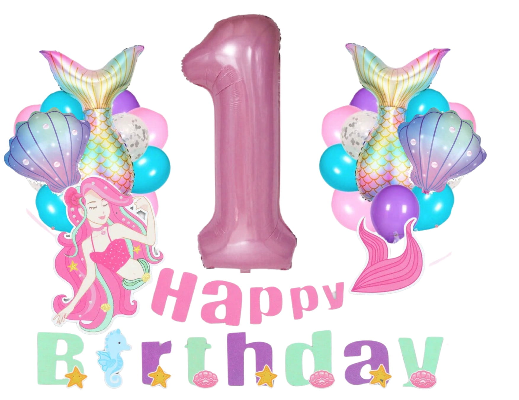 ✔️ baner urodzinowy Happy Birthday Syrenka (wielkość syrenki około 40cm, największa literka około 15cm)