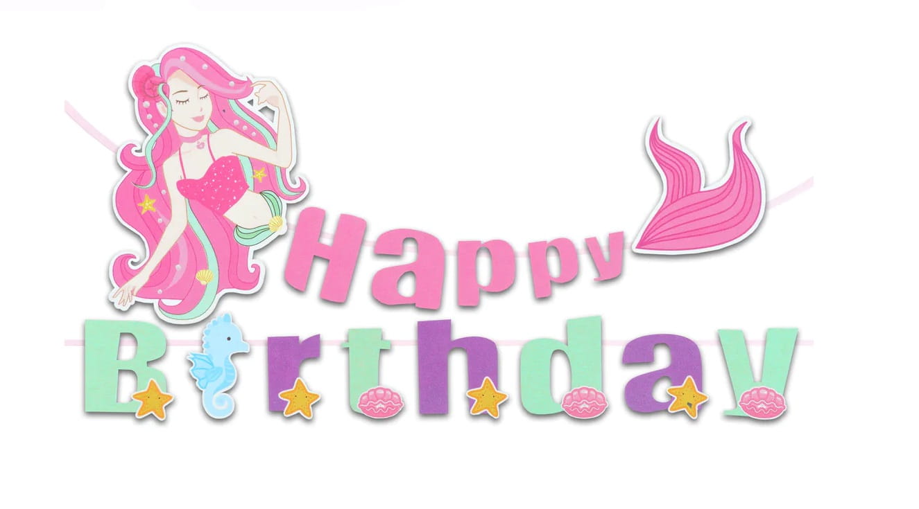✔️ baner urodzinowy Happy Birthday Syrenka (wielkość syrenki około 40cm, największa literka około 15cm)
