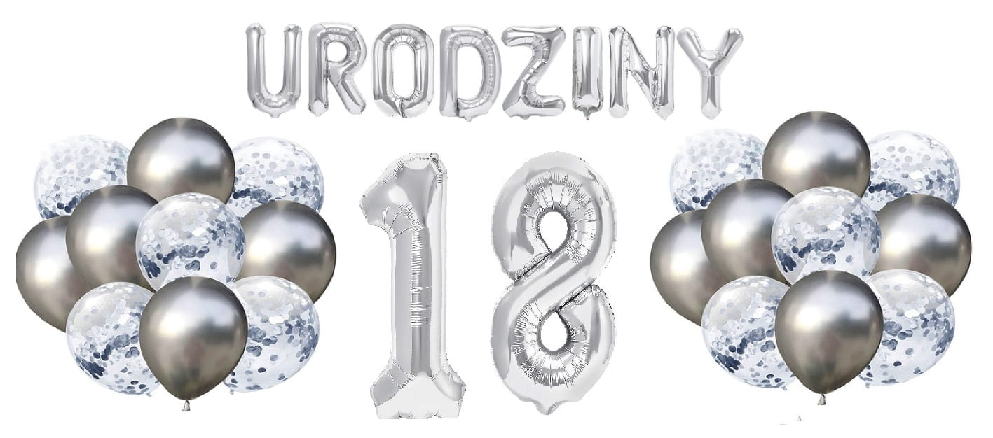 Zestaw balonów na Urodziny srebrny napis 0-99
