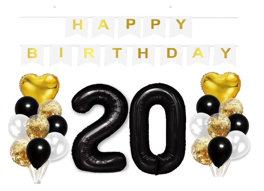 Zestaw balonów na Urodziny z czarnymi cyframi 20 100cm Duże Hel
