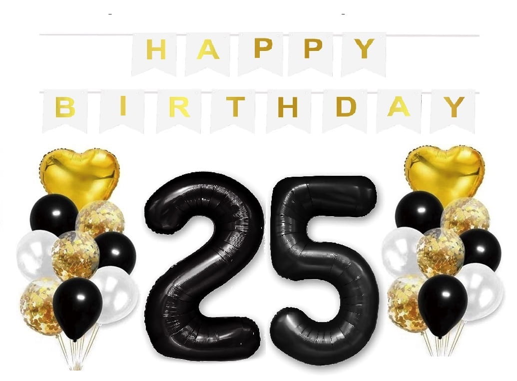 Zestaw balonów na Urodziny z czarnymi cyframi 25 100cm Duże Hel