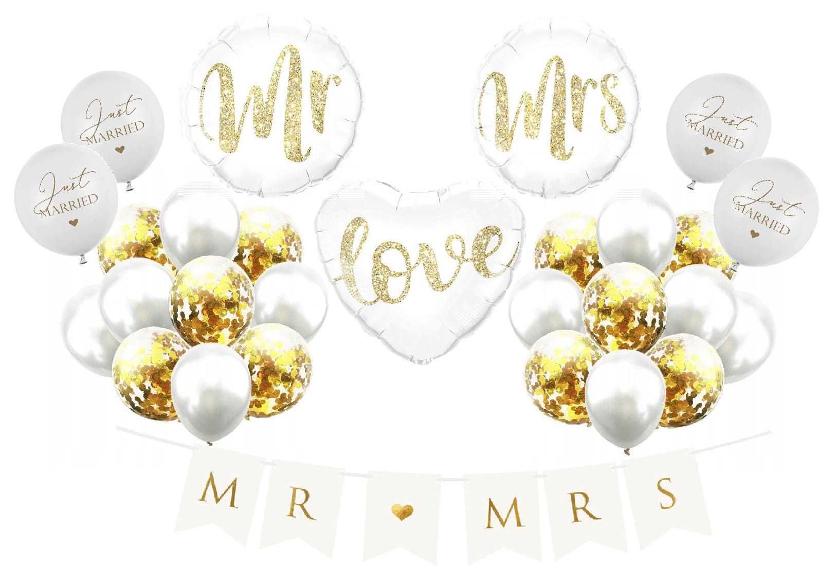 Zestaw balonów na Wesele Białe Love Mrs konfetti