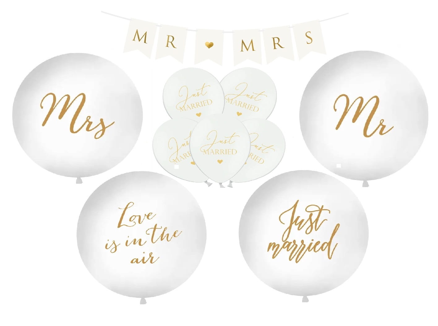 Zestaw balonów na wesele Just Married Giganty Mr Mrs Love