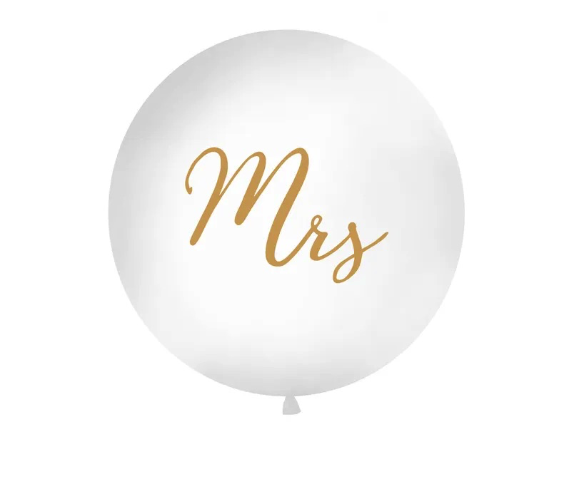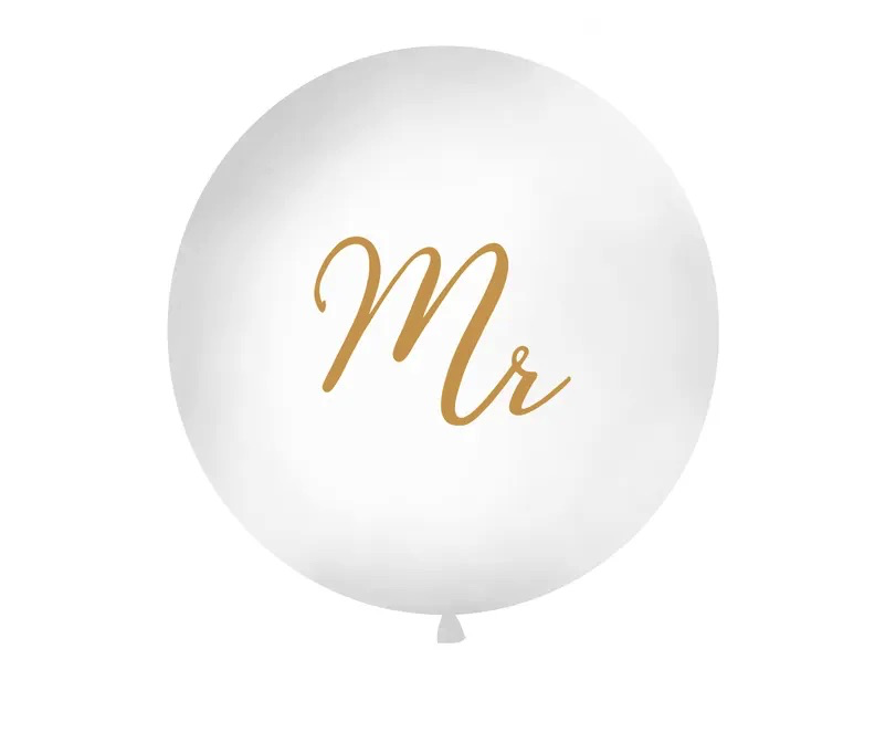 ➡️ balony lateksowe białe ze złotym nadrukiem Mrs i Mr 2 sztuki około 100 cm (1 metr)