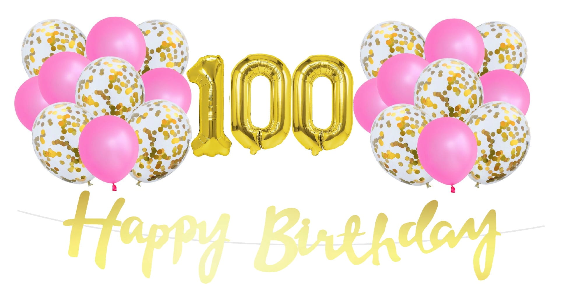 Zestaw balonów różowo złotych na 100 urodziny Baner Balony cyfry