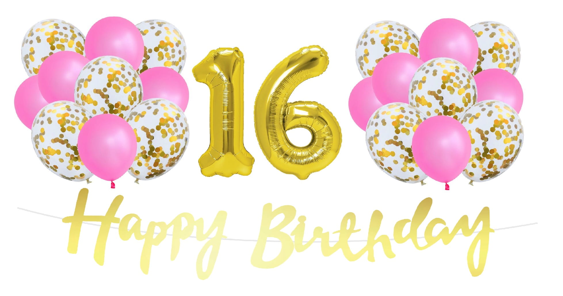Zestaw balonów różowo złotych na 16 urodziny Baner Balony cyfry