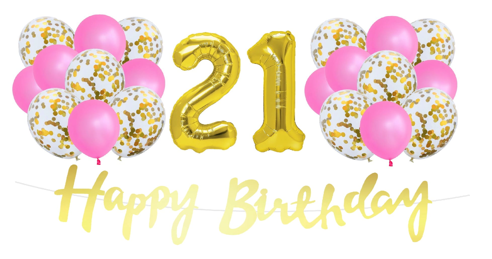 Zestaw balonów różowo złotych na 21 urodziny Baner Balony cyfry