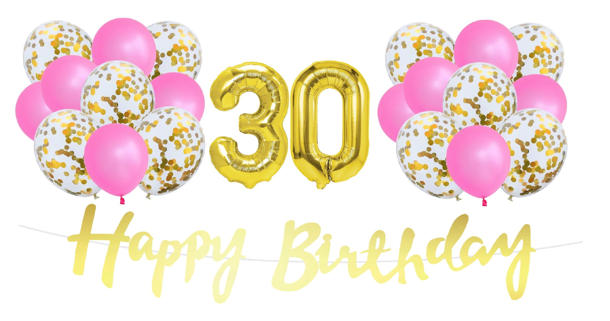 Zestaw balonów różowo złotych na 30 urodziny Baner Balony cyfry