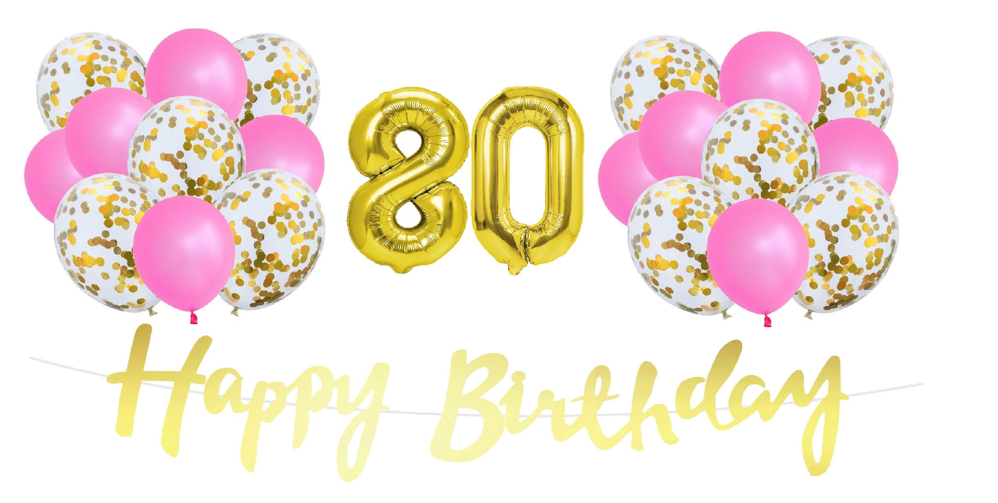 Zestaw balonów różowo złotych na 80 urodziny Baner Balony cyfry