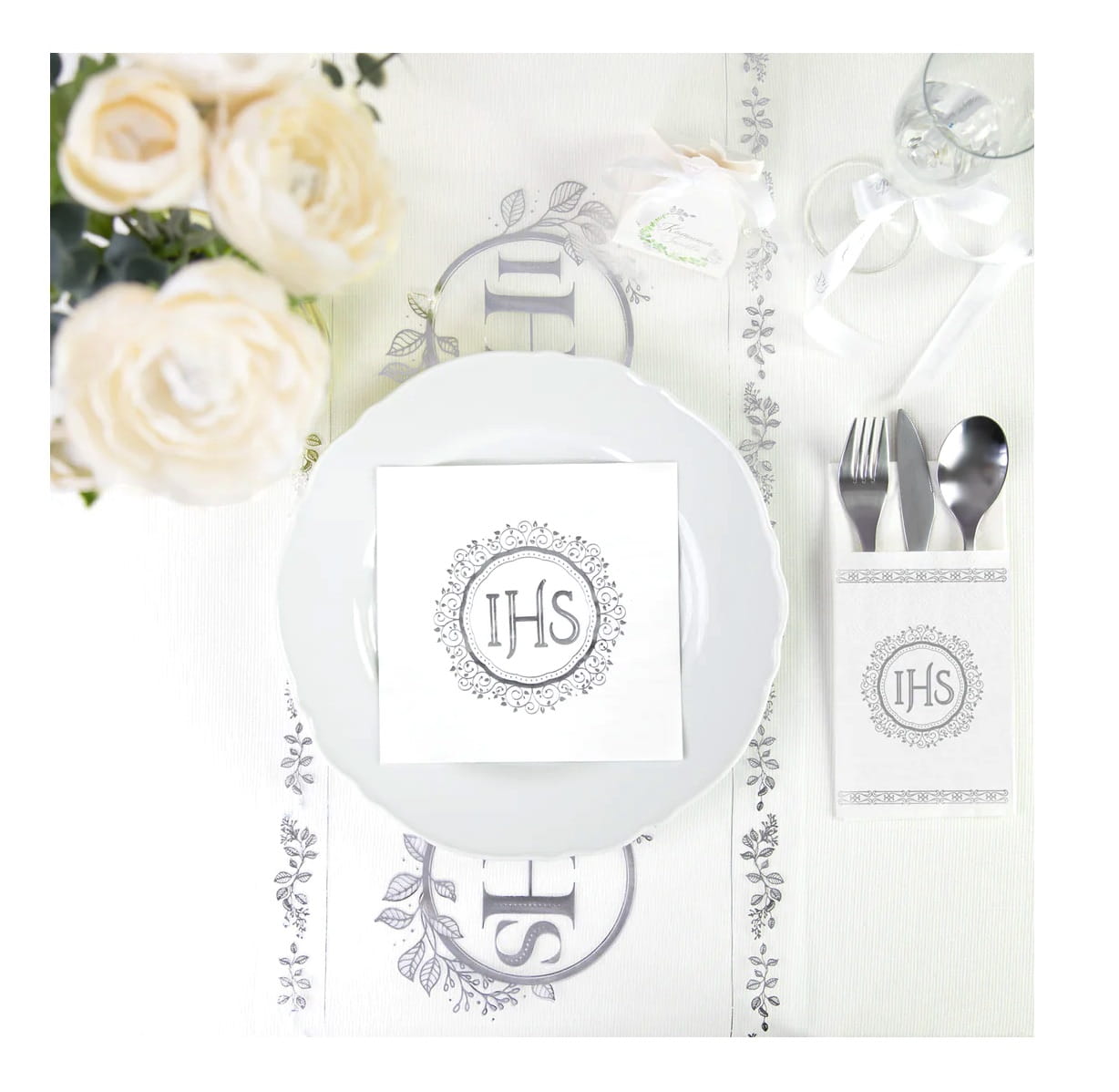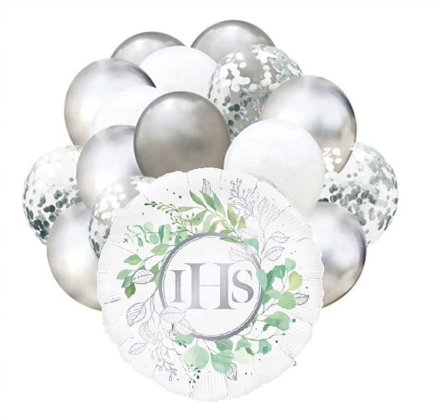 Zestaw balonów Komunijnych srebrne z nadrukiem IHS Komunia święta