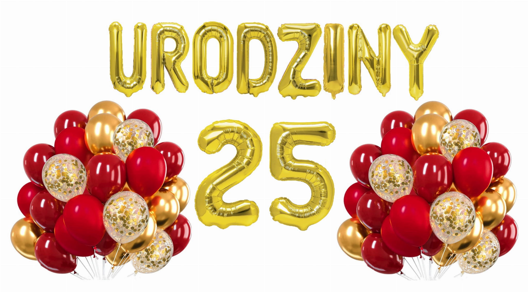 Zestaw balonów złoto czerwonych na 25 Urodziny Cyfry
