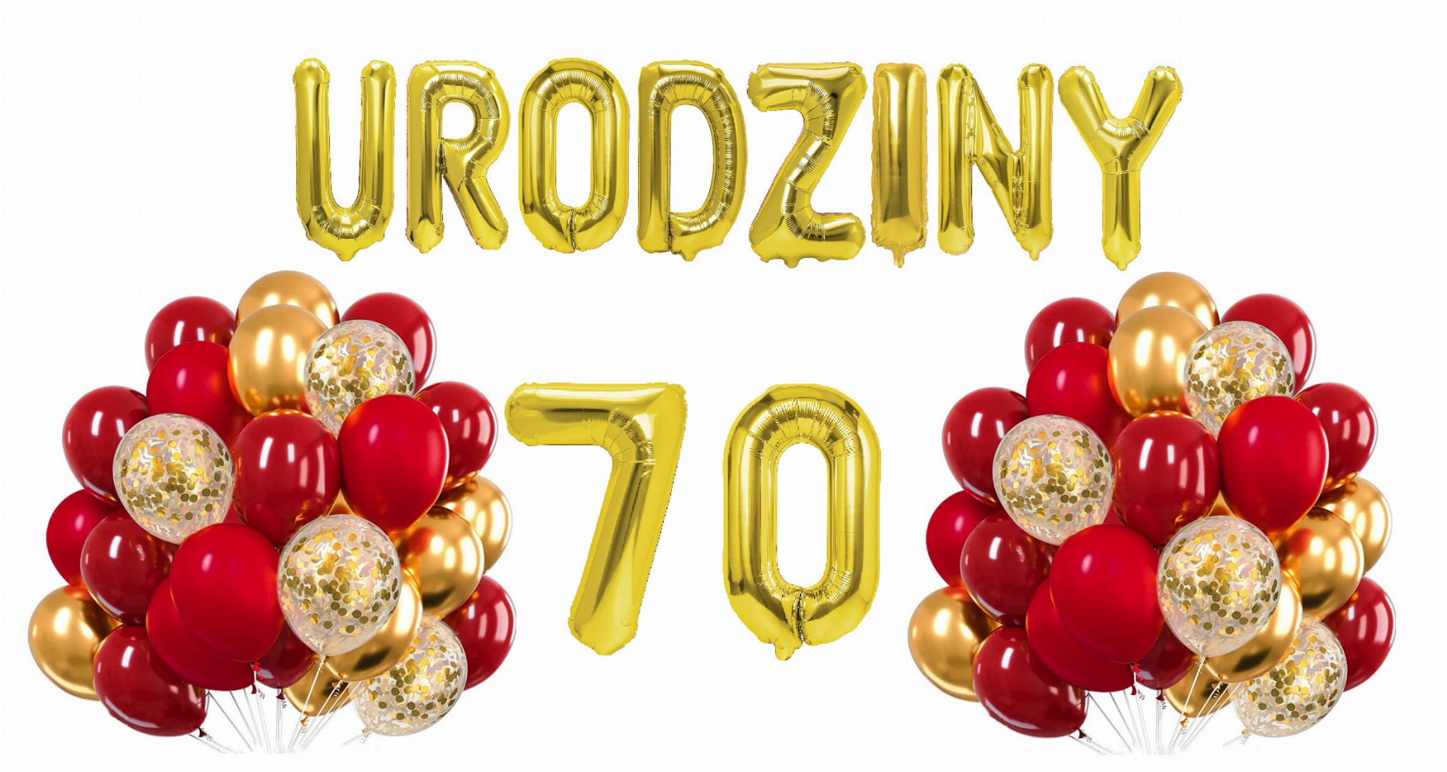 Zestaw balonów złoto czerwonych na 70 Urodziny Cyfry