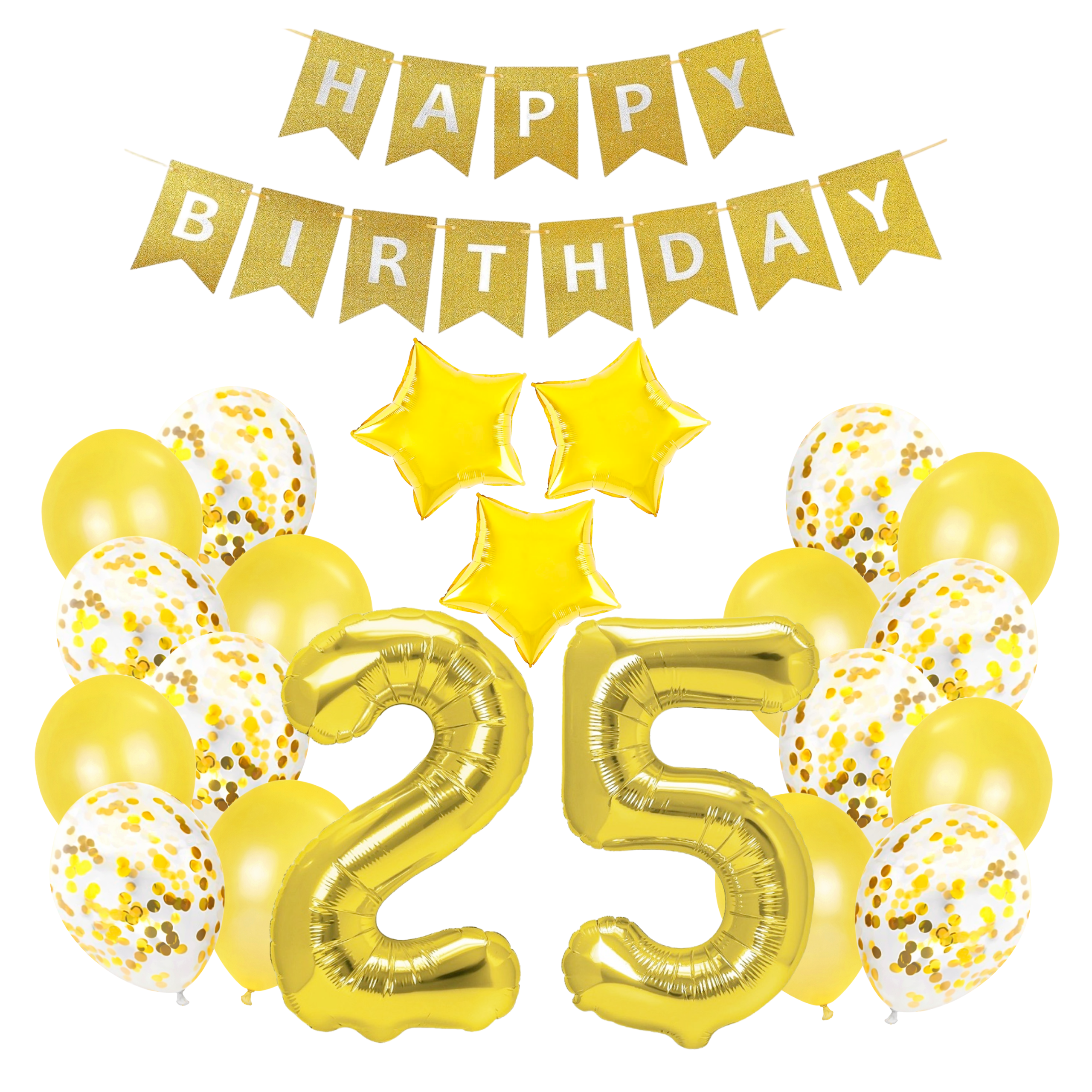 Zestaw balonów złotych na Urodziny z Banerem cyfry 25 70cm Dwadzieścia pięć