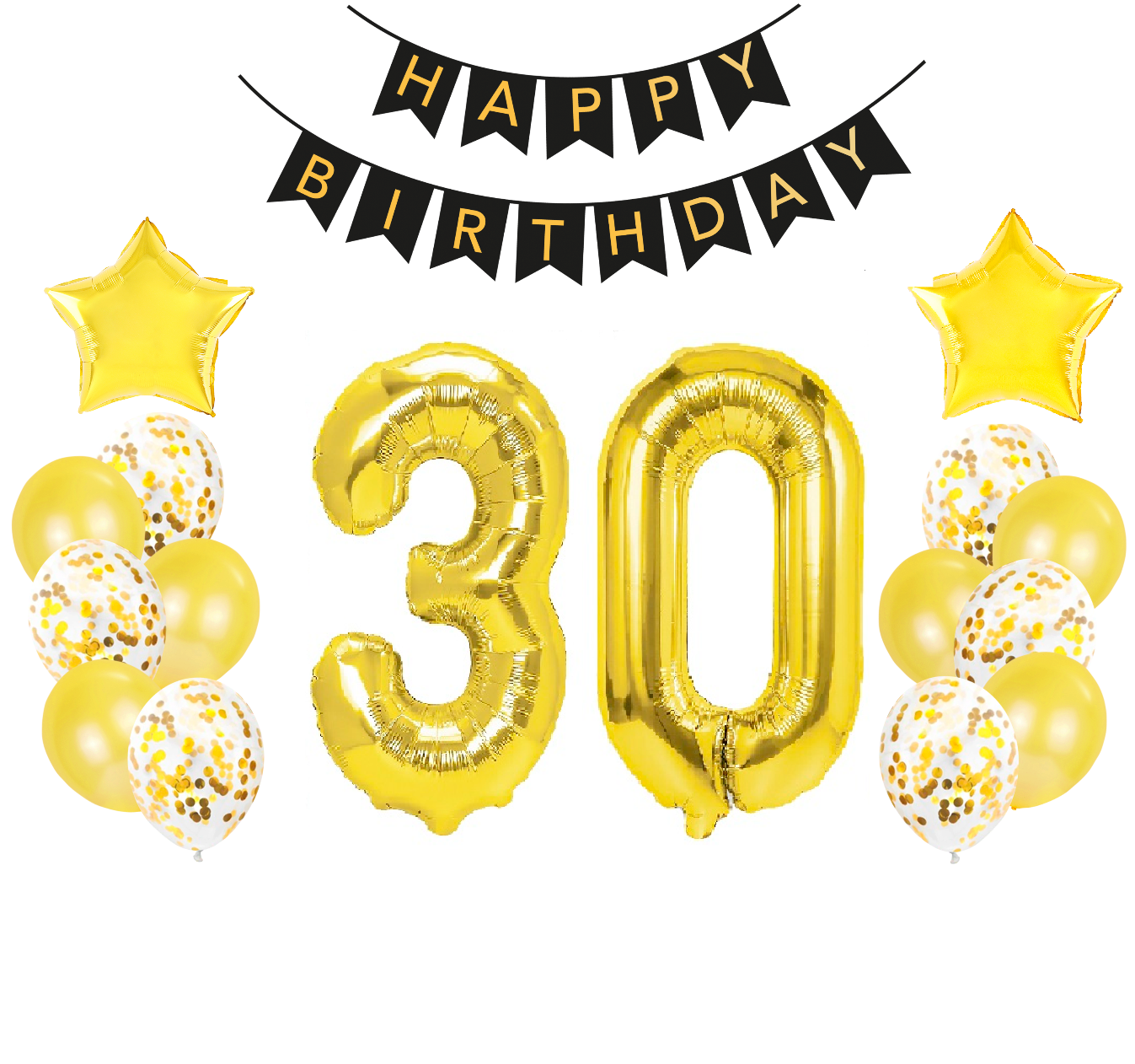 Zestaw balonów złotych na Urodziny z Banerem cyfry 30 70cm trzydziestka