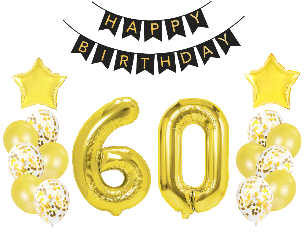Zestaw balonów złotych na Urodziny z Banerem cyfry 60 70cm Faceta żony