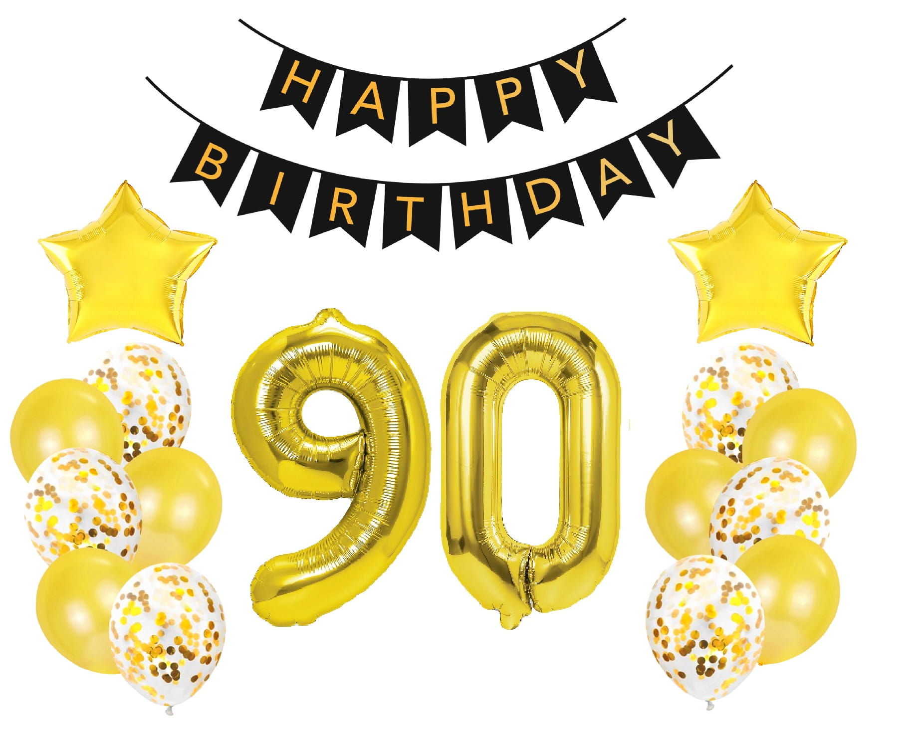 Zestaw balonów złotych na Urodziny z Banerem cyfry 90 70cm Faceta żony