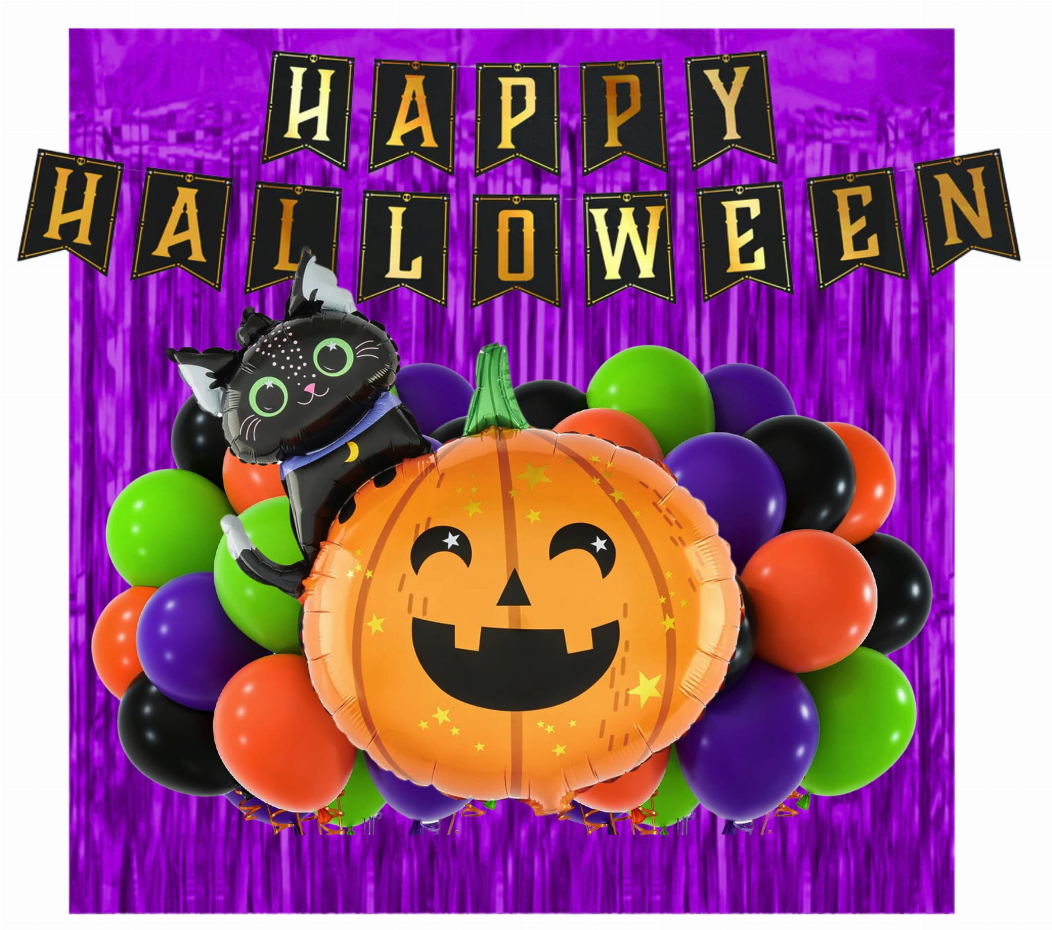 Zestaw dekoracji na Halloween Balony Kurtyna Dynia z Kotkiem Happy