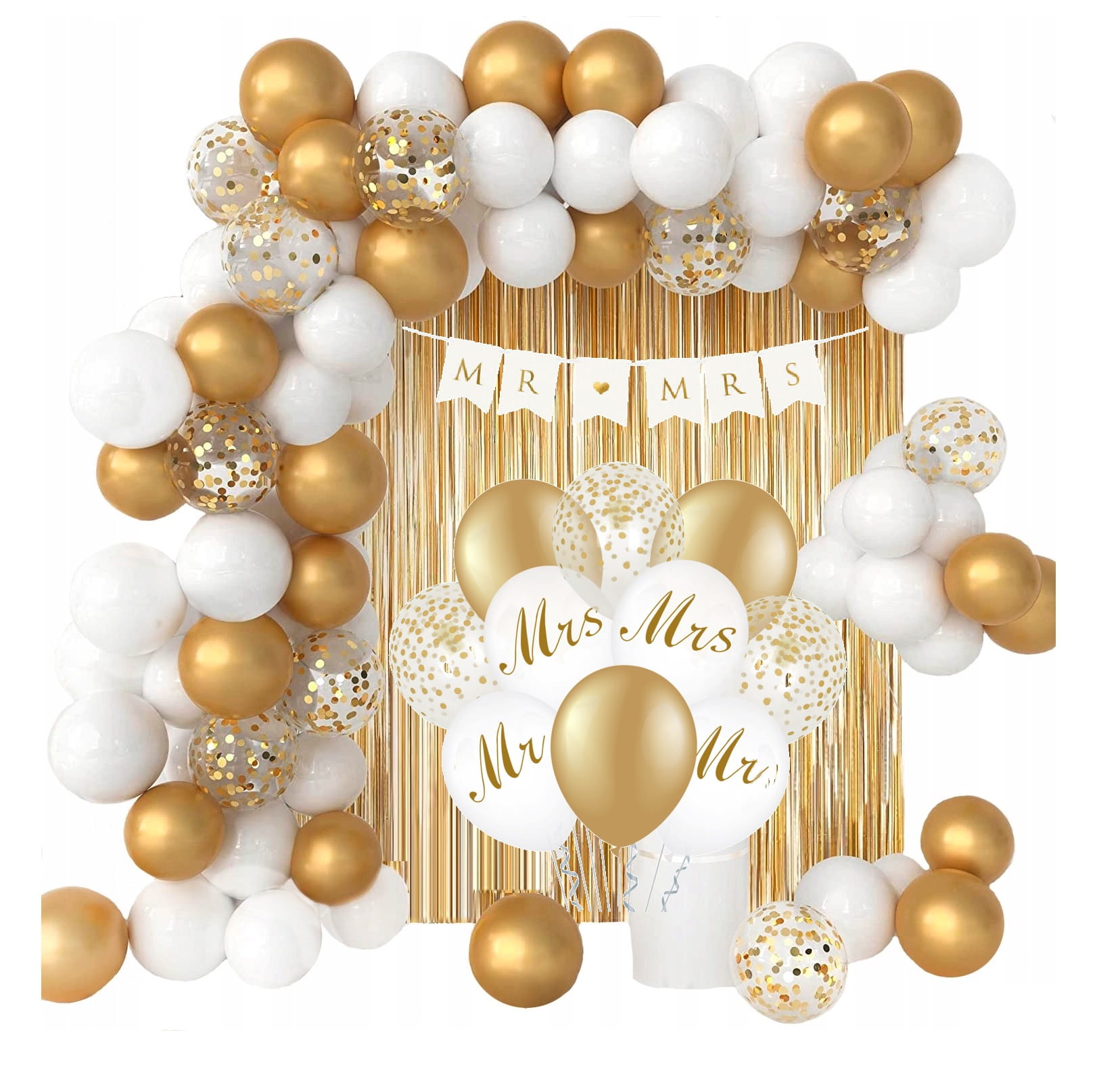 ✔️ balony lateksowe białe ze złotym nadrukiem Mrs i Mr 4 sztuki około 31 cm (12 cali)