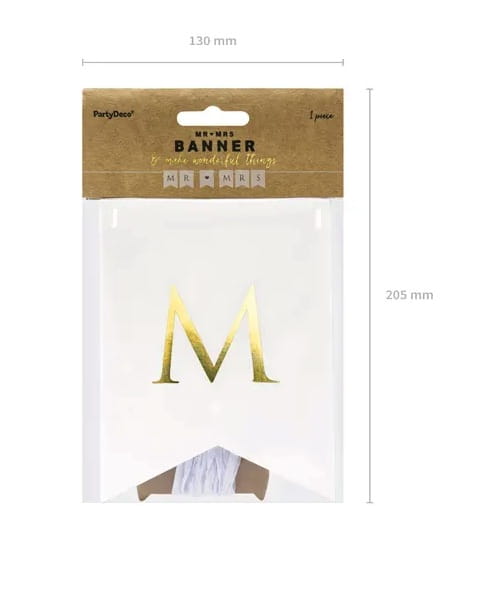 ✔️ baner papierowy biały ze złotym napisem Mr Mrs 1 sztuka ( ok. 2,5 m białej tasiemki, wysokość ok. 15 cm, długość ok. 85 cm, do samodzielnego złożenia)