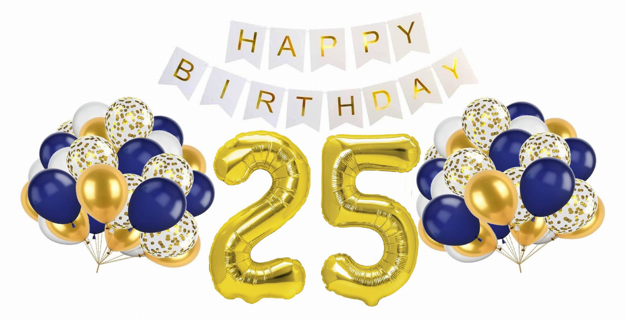 Zestaw na 25 urodziny Balony Baner Cyfry złoty 70cm Happy Birthday