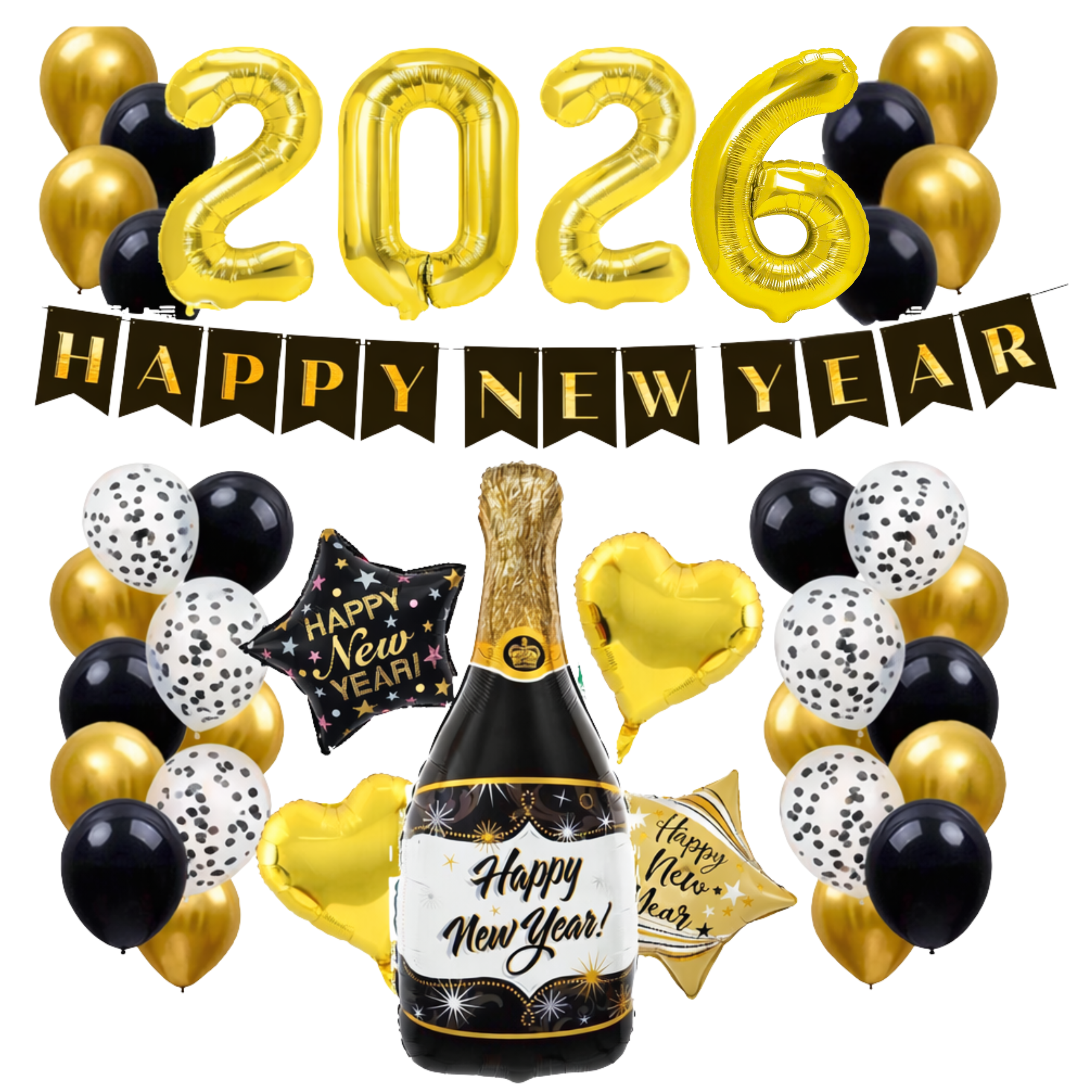 Zestaw balonów na Sylwestra Happy New Year Szampan Gwiazdy 2026 Dekoracje