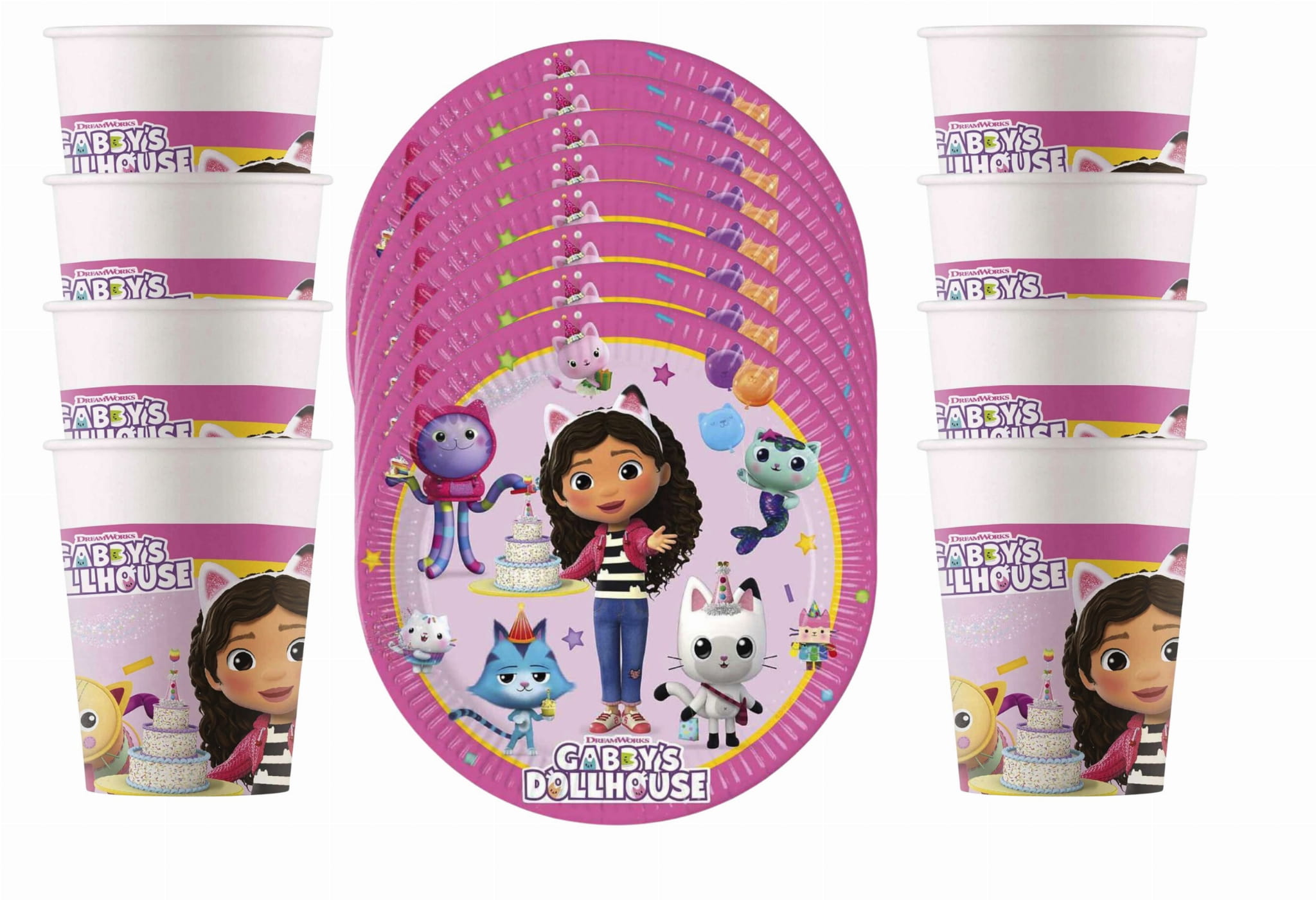 Zestaw urodzinowy Koci Domek Gabi 8 OSÓB Kubki talerzyki serwetki Gabby's